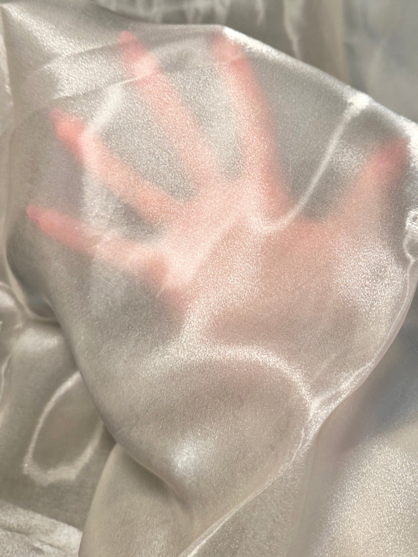 Turn every design into a show-stopping moment with this Liquid Shimmery Organza — a fabric that feels like it walked straight off a couture runway. With its glossy, wet-look shine and fluid shimmer that moves with the light, this organza instantly elevates any silhouette from simple to spectacular. Unlike our Liquid Shimmery Chiffon, this beauty has more structure, body, and volume, creating dramatic shapes and sculpted folds that hold their form while still looking weightless.