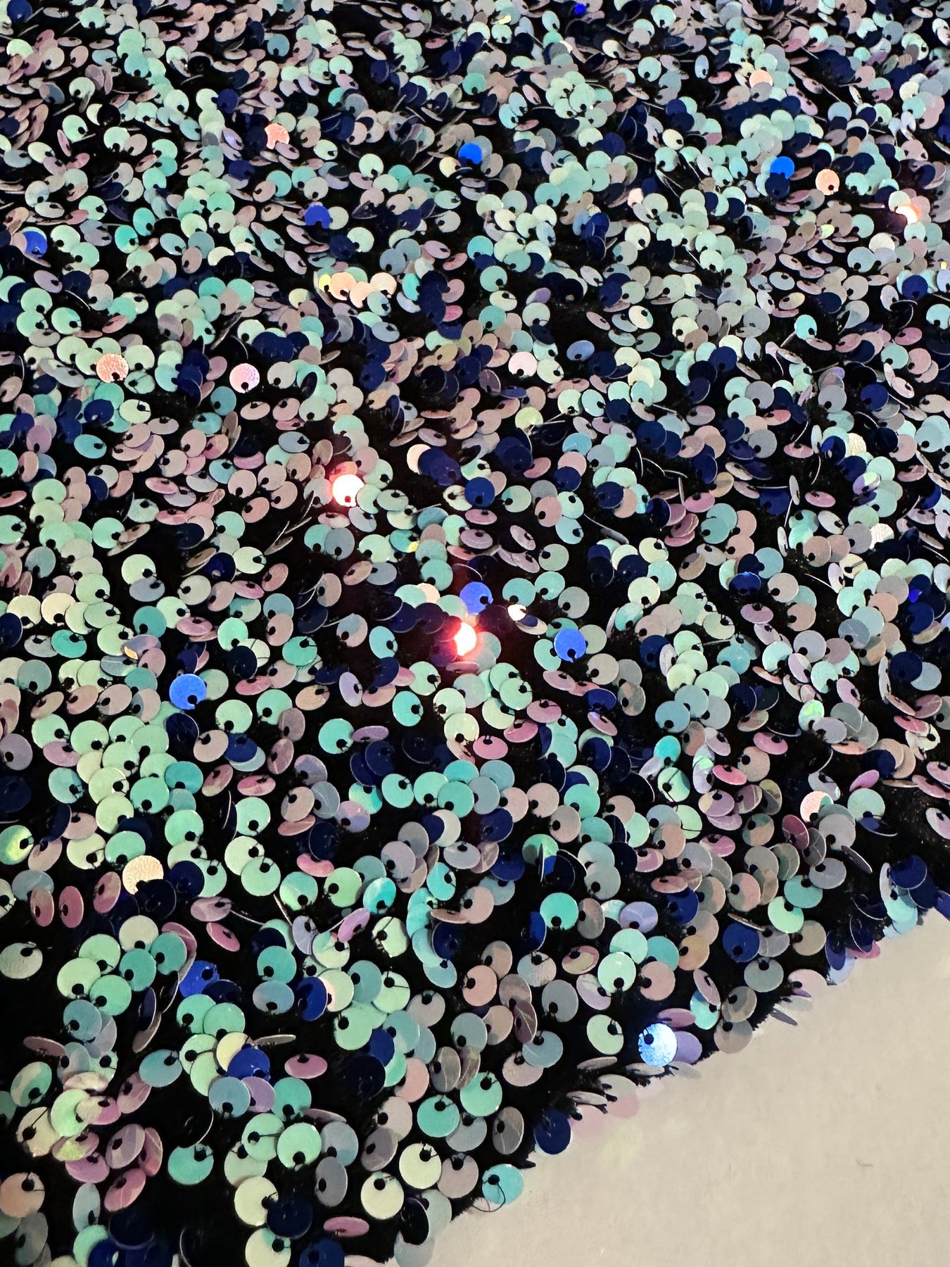 In the mood to be Luxurious? Make a statement with sequins!!! Keep everyone guessing with Kiki's Sequin on velvet. Sequins on velvet is a stunning and glamorous combination that is sure to make a bold and memorable statement. The contrast of the soft, plush velvet with the shimmering, reflective sequins creates a luxurious and eye-catching effect that is hard to ignore.