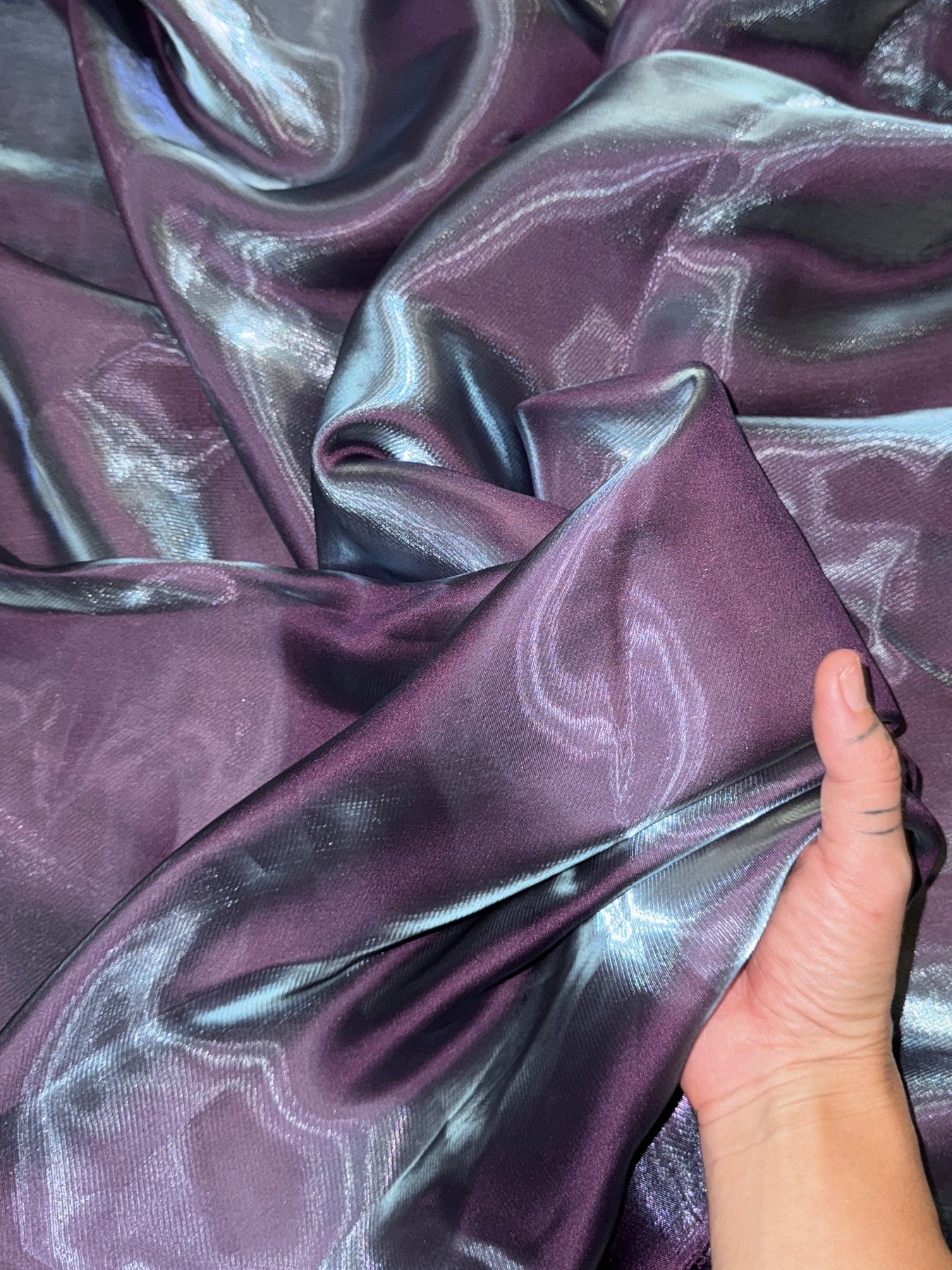 Crafted from 100% polyester, it offers a stunning wet-look sheen with subtle shimmer, catching the light with every movement. Despite its delicate appearance, it's durable, lightweight, and easy to work with – making it a favorite among designers and DIY creators.