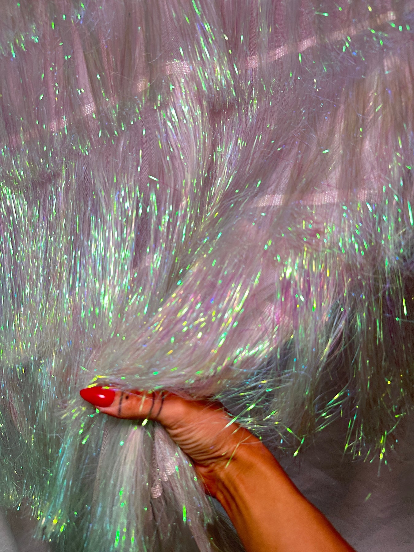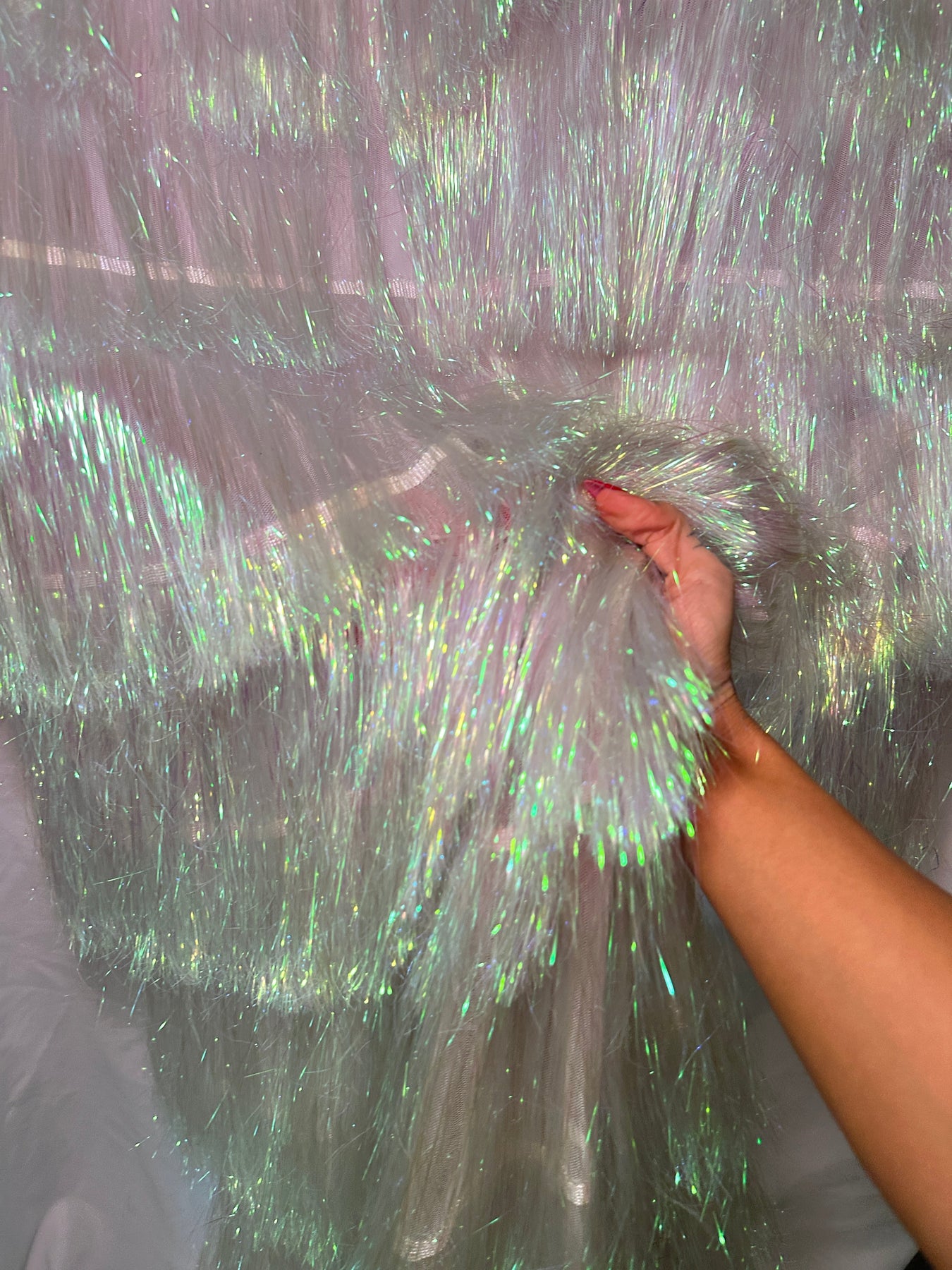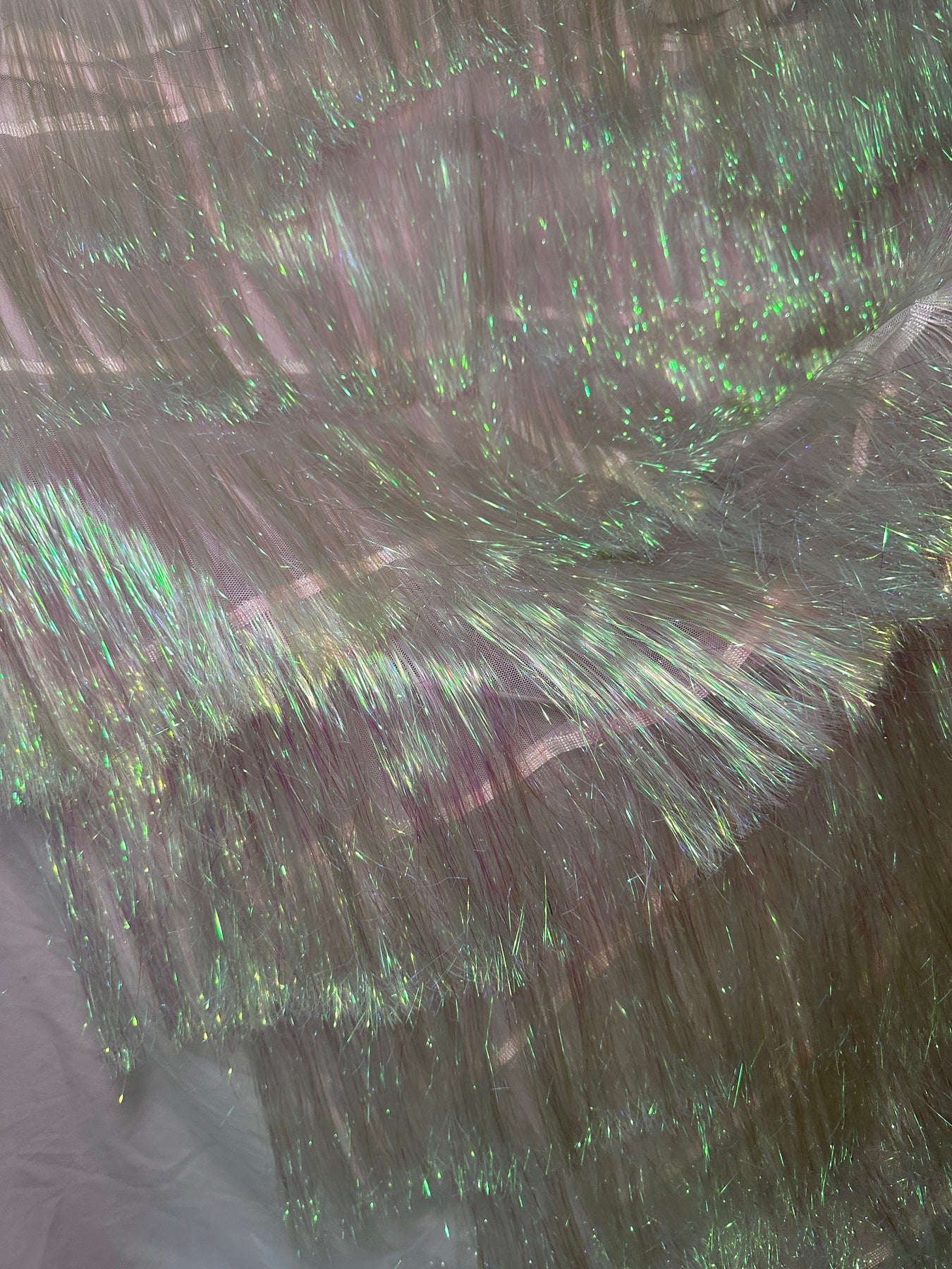 Make a bold statement with our New Luxury Metallic Fringe Fabric, embroidered on a soft two-way stretch mesh base. Featuring long, shimmering metallic strands, this fabric is designed to catch the light from every angle, creating instant drama and movement. The unique fringe design offers volume, flow, and a glamorous edge—perfect for eye-catching fashion and stage-ready creations.