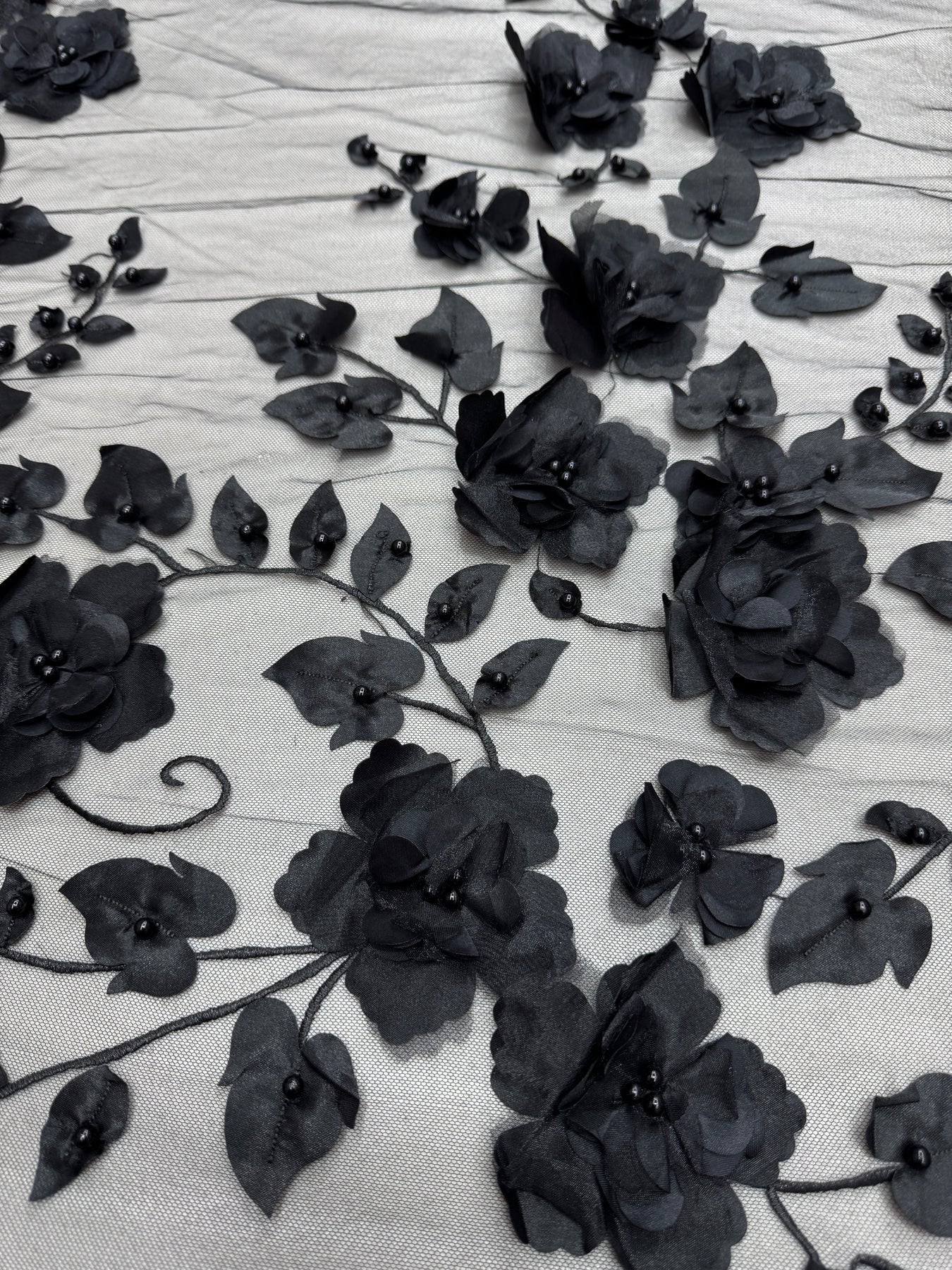 Black 3D Flower Beaded Lace Mesh