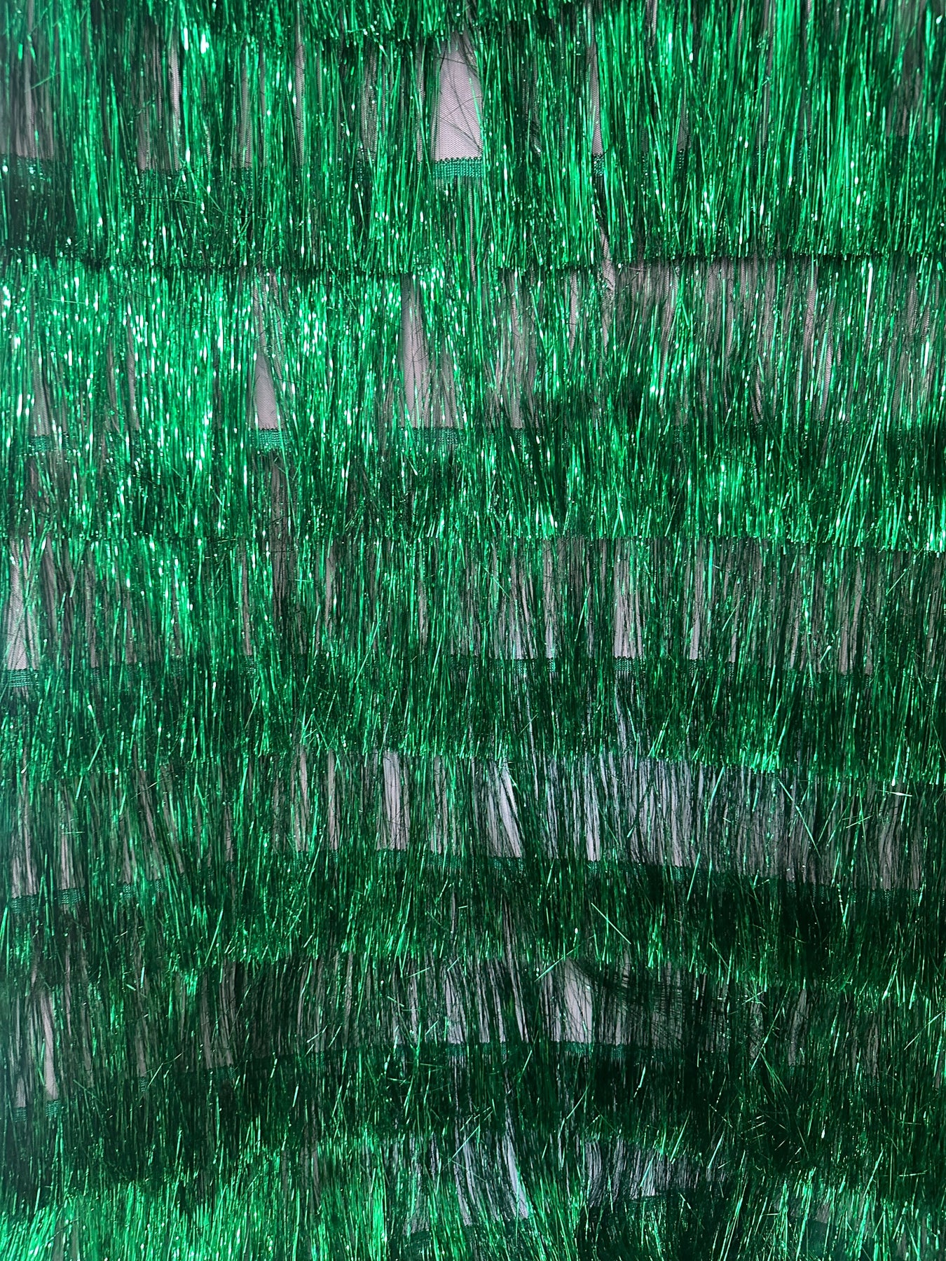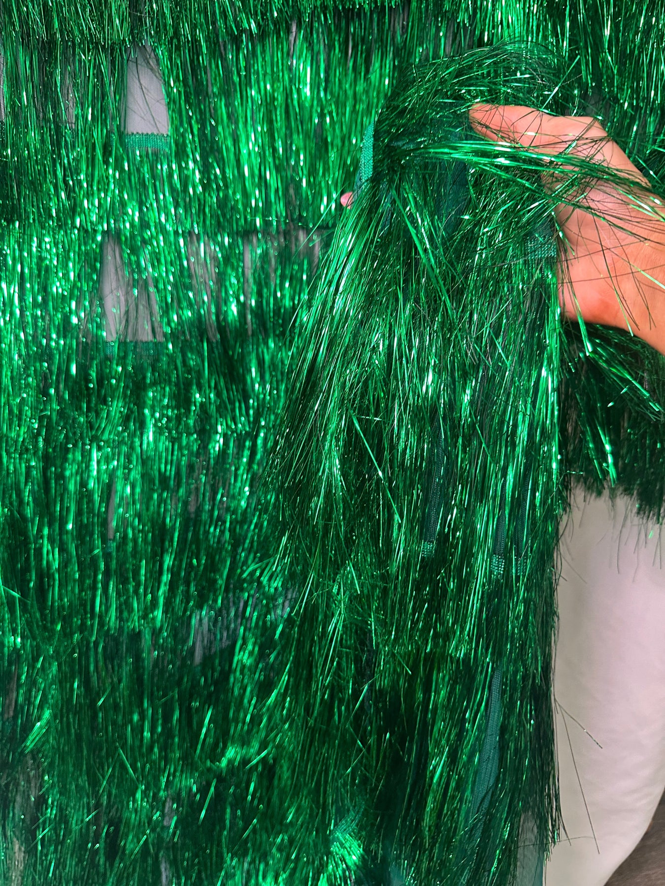 Kelly Green Fringe Metallic Mesh Base Fabric