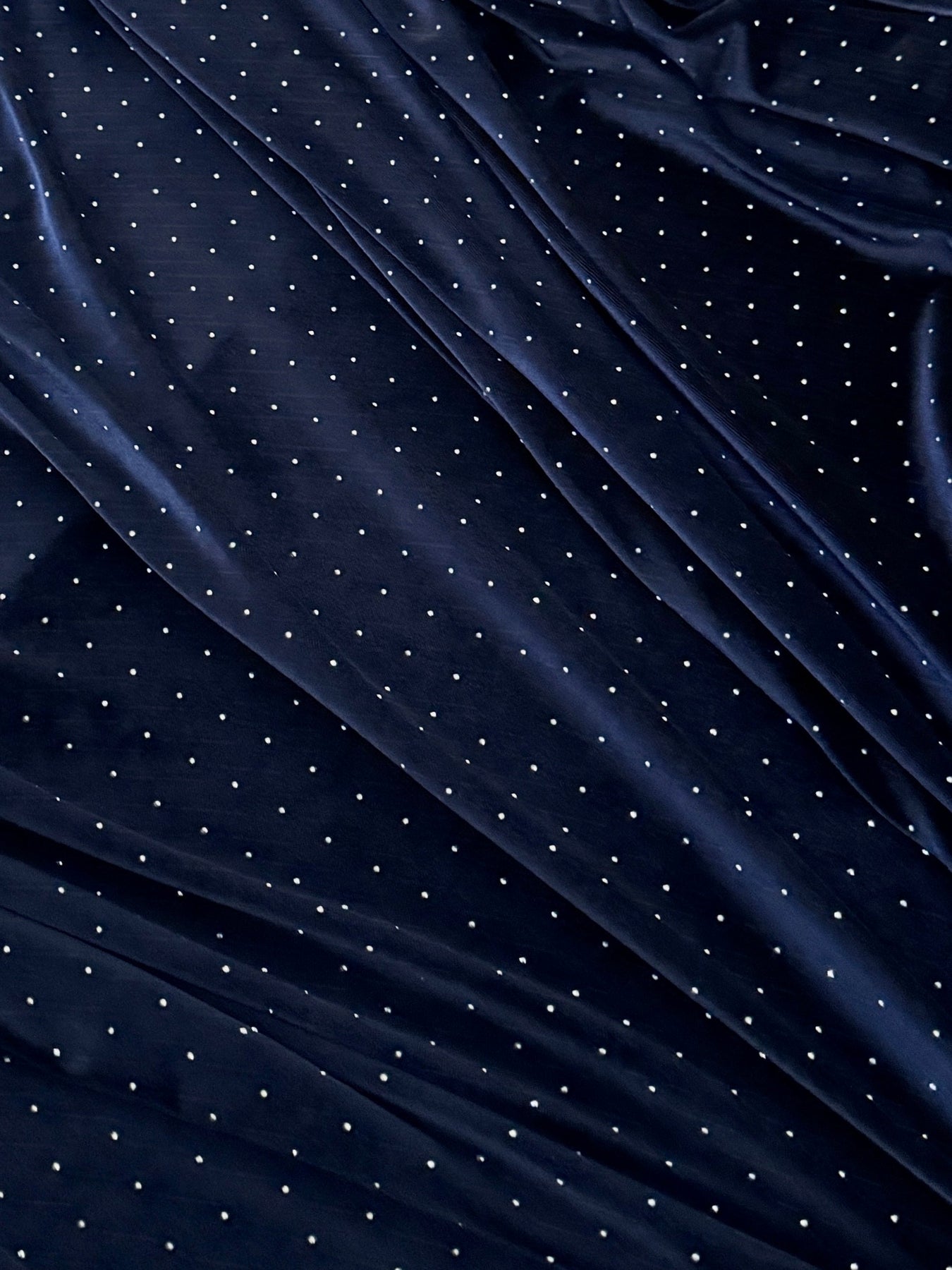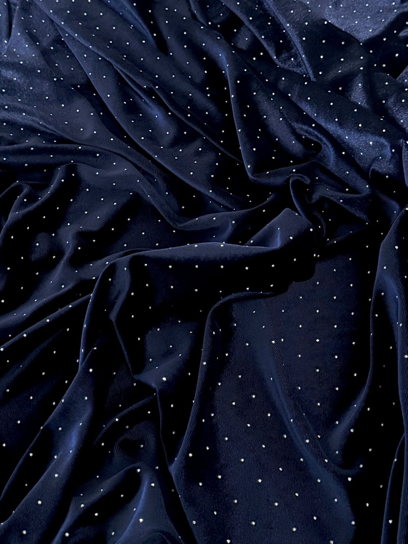 Navy Blue Sturdust Rhinestone Beaded Stretch Velvet