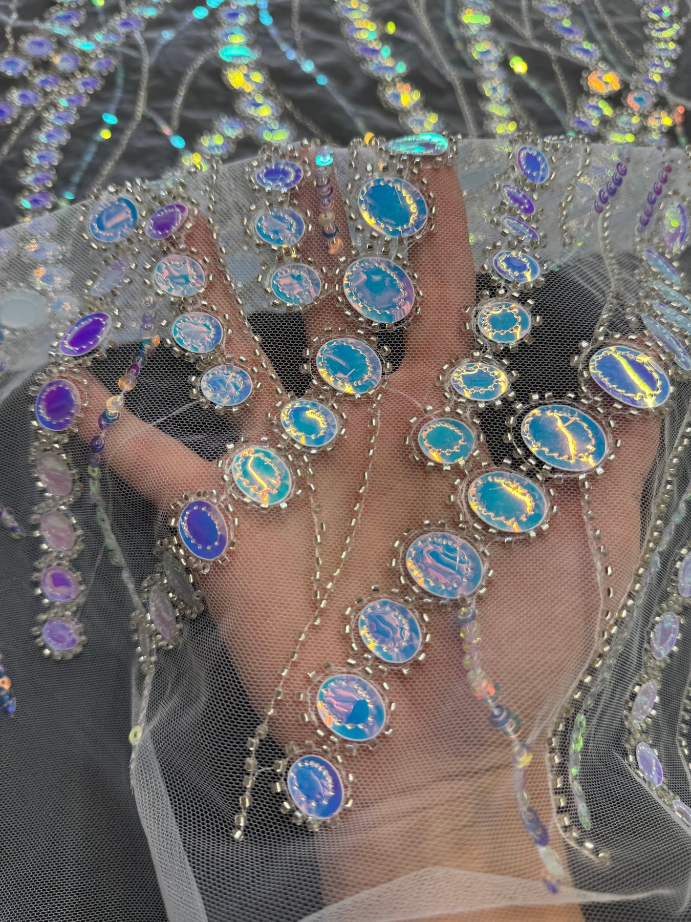 "Love it, the silver iridescent sequins shine a lot and the wave lace looks really neat and well made." Chloe S., Verified Kikitextiles Customer ✅