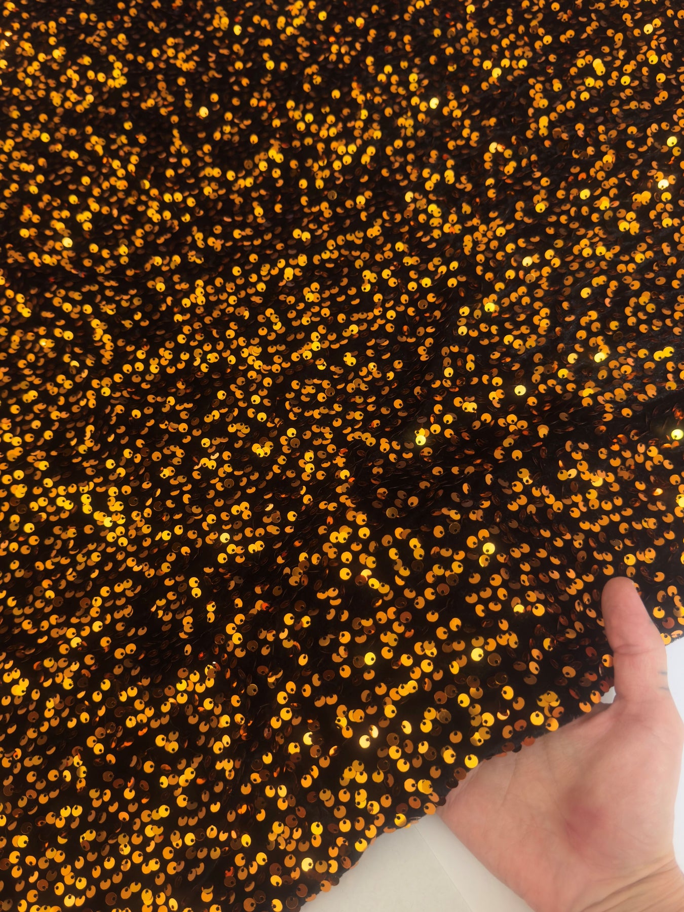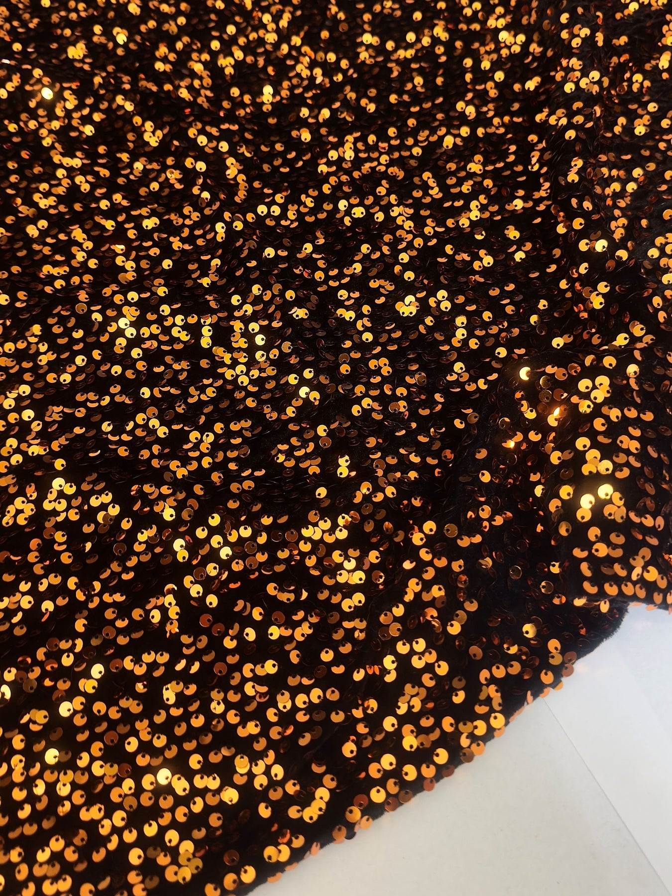 "The burnt orange color is gorgeous. Sequins shine beautifully and the velvet feels really nice." Chloe R., Verified Kikitextiles Customer ✅