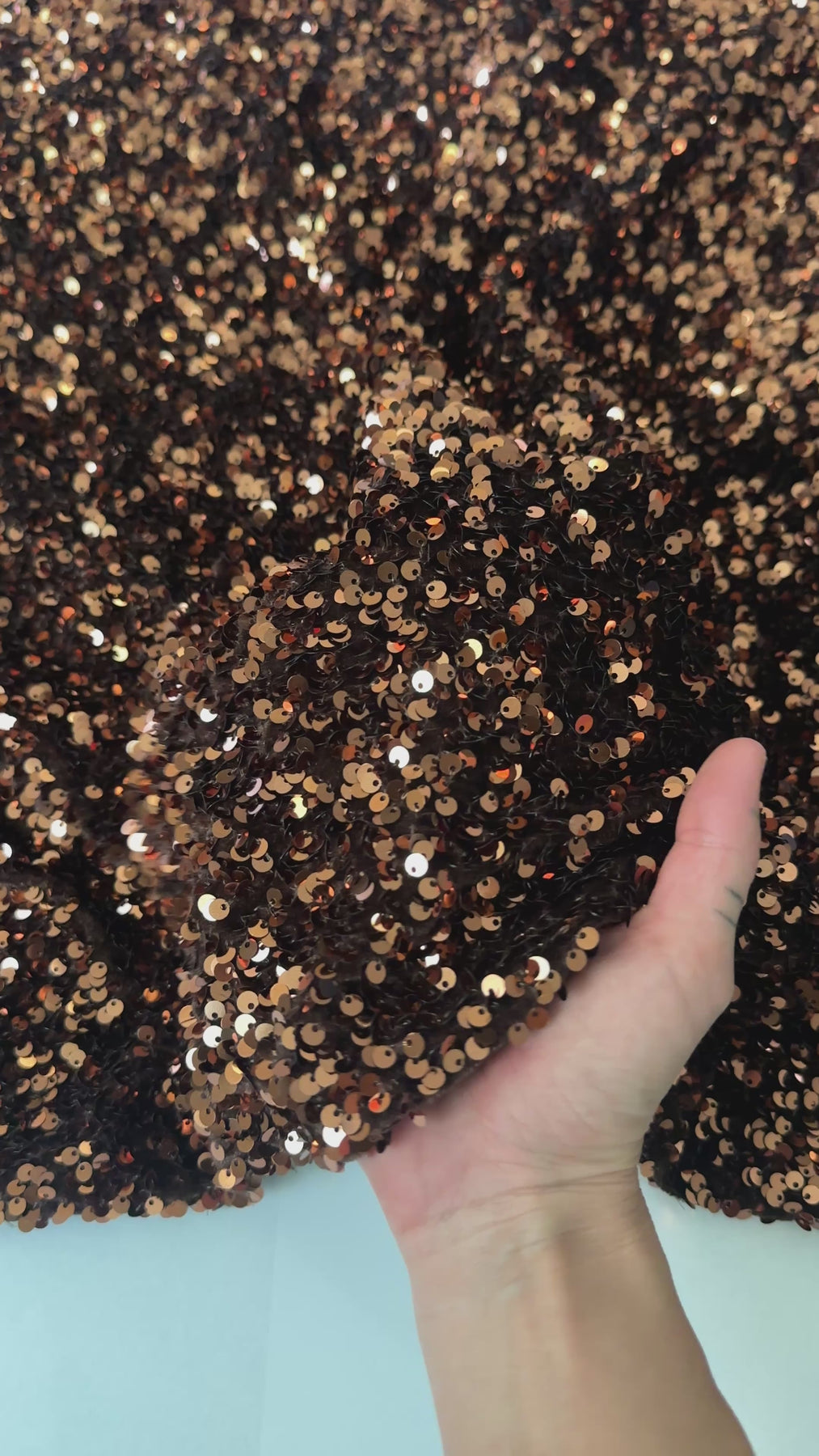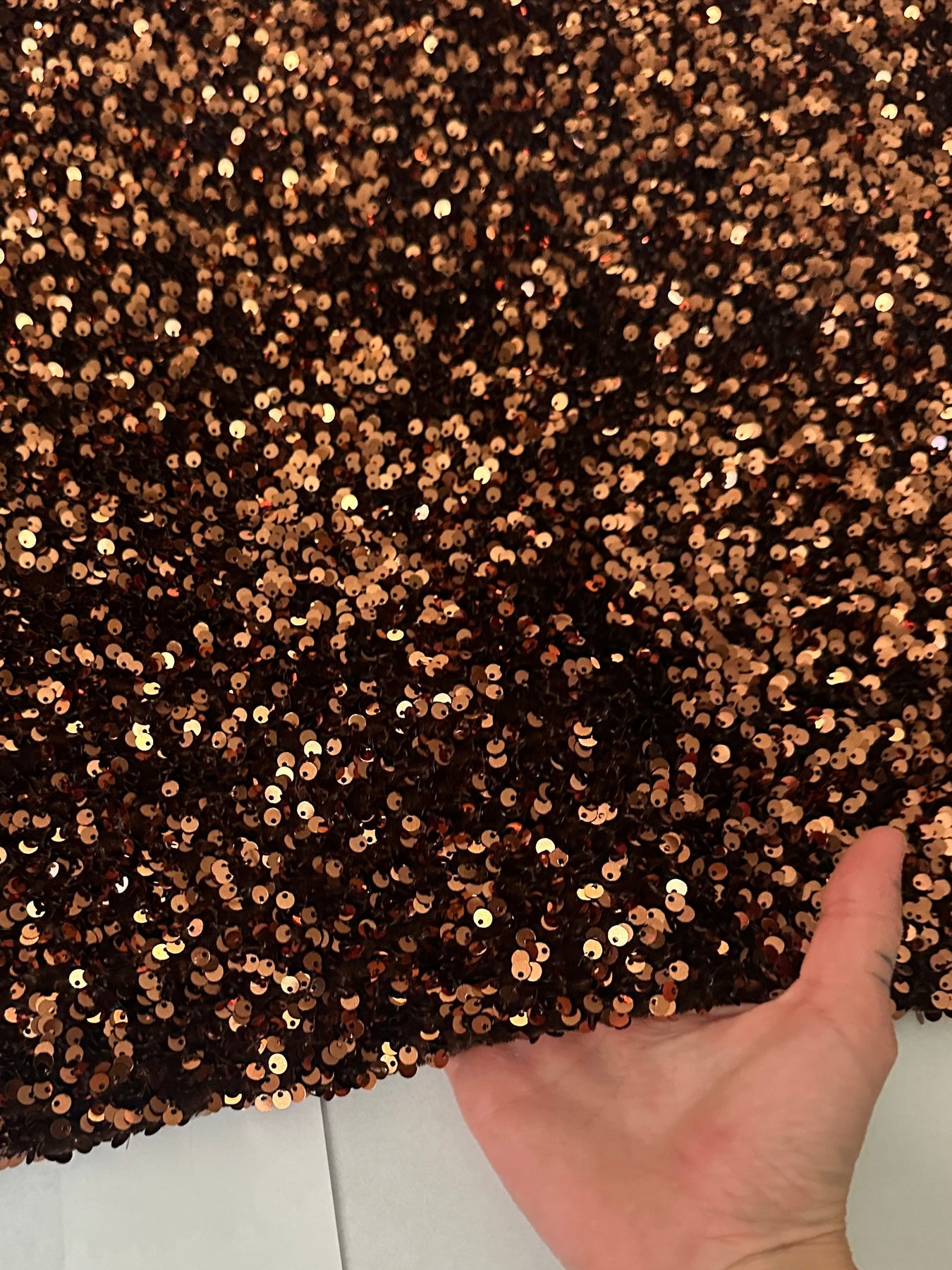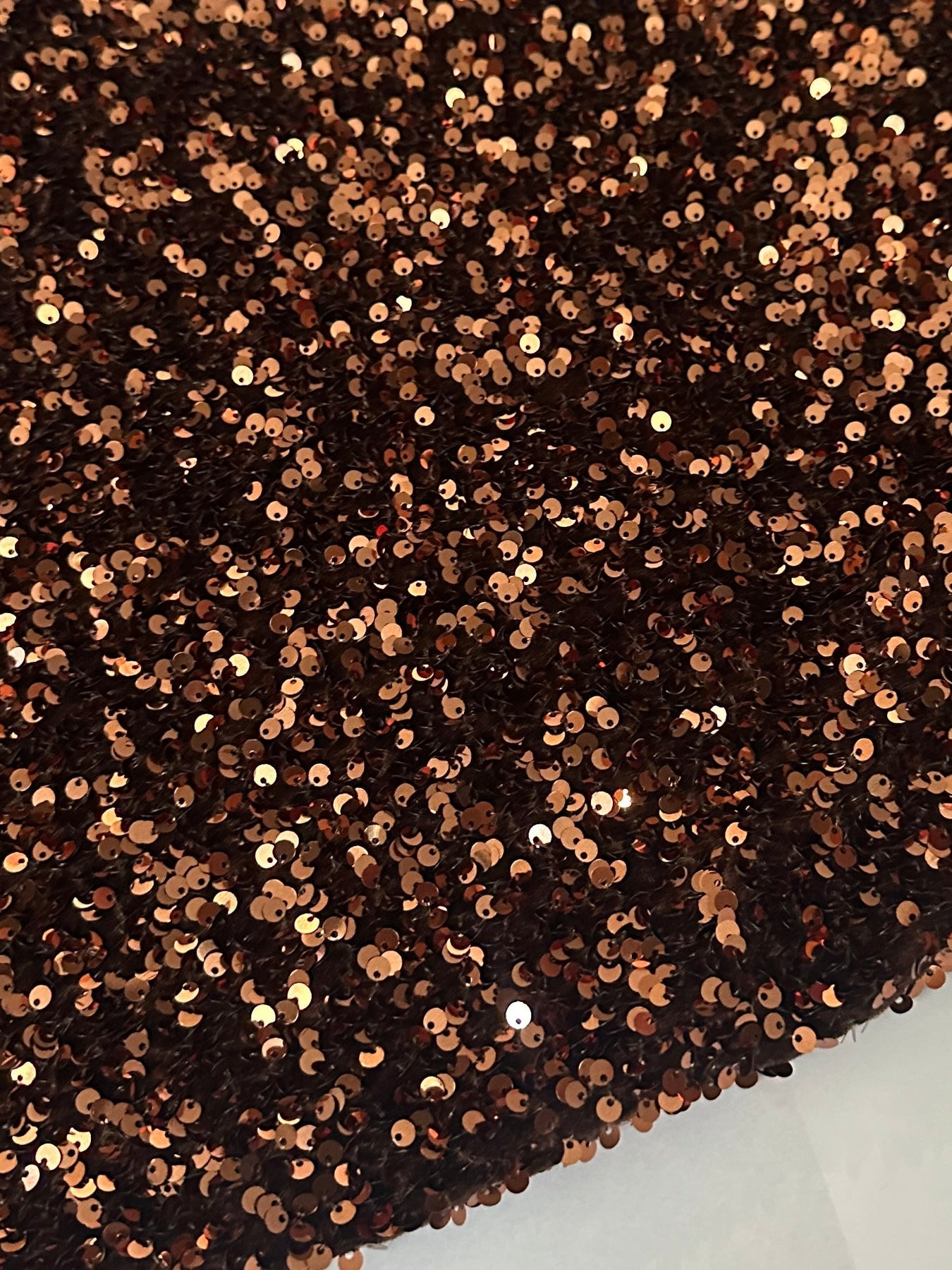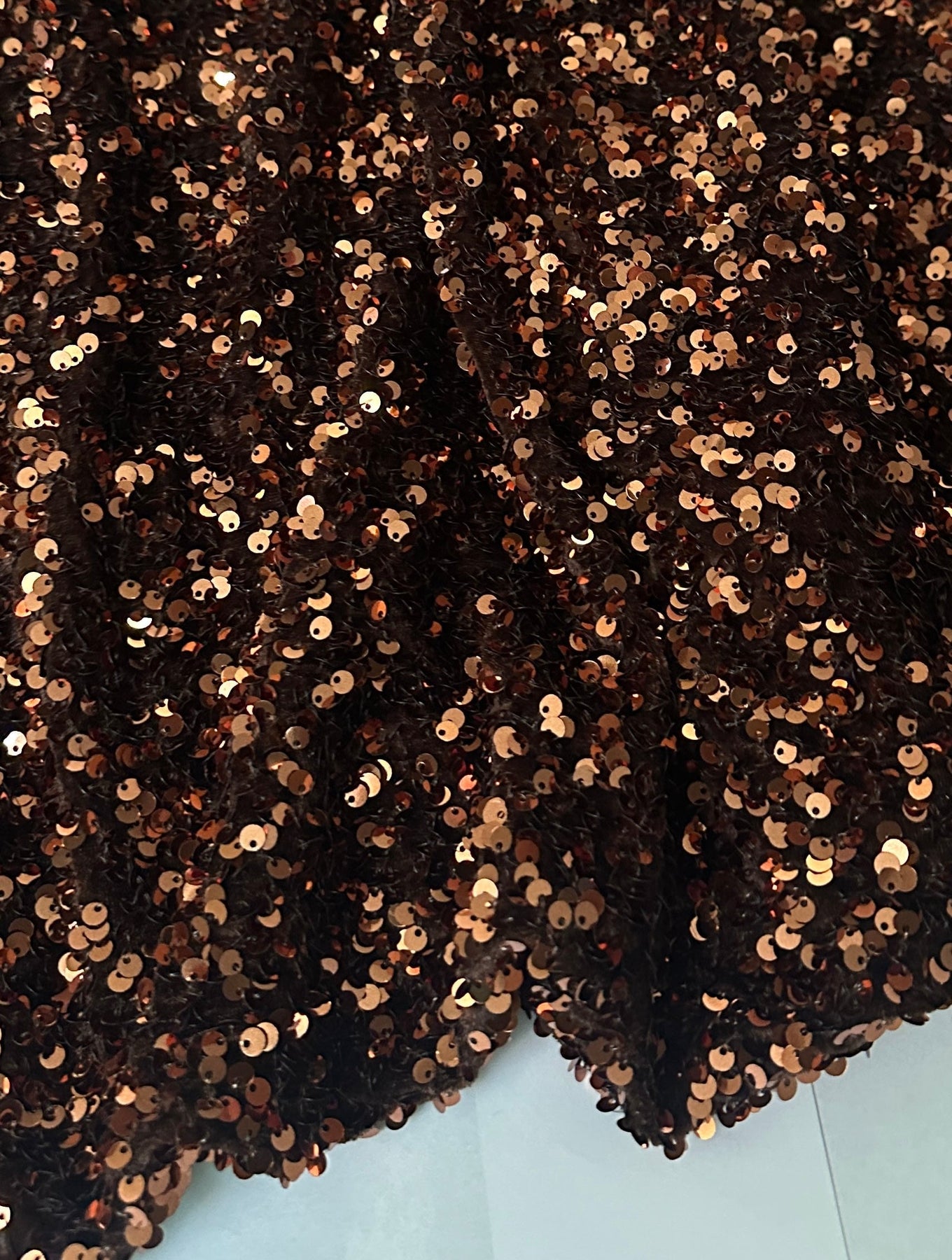 This unique fabric features a lovely stretch velvet base that is heavily embellished with sequins. Our Sequin Velvet fabric has sequins embroidered throughout the whole fabric. This fabric is ideal for decorative and apparel purposes.